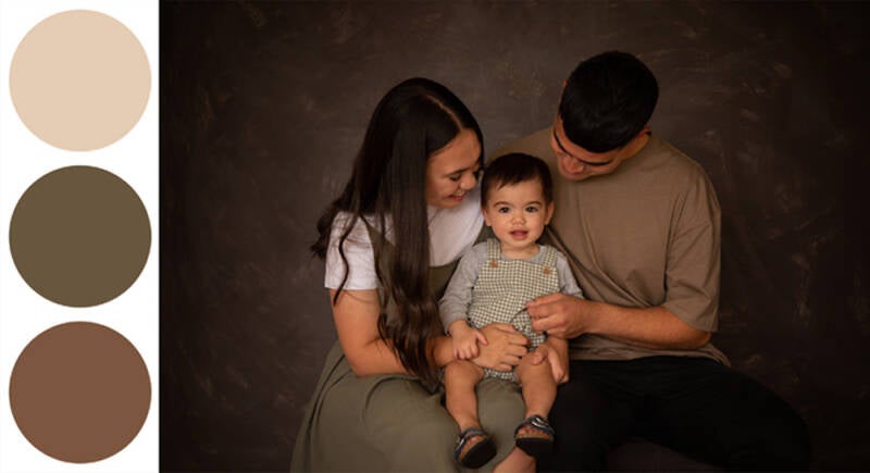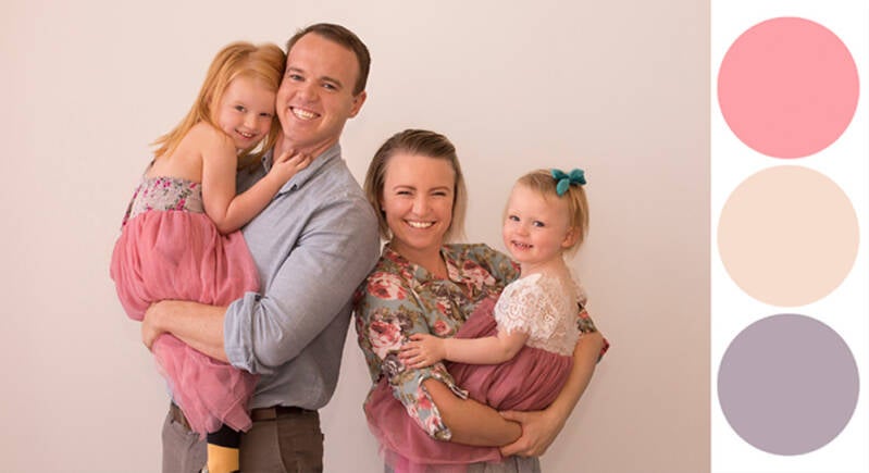 Focus on choosing colours, tones and textures that will compliment each other and your home. Consider coordinating your outfits to your home décor, as you will be displaying your photos on your walls. For example, if your house is decorated in white muted tones, don’t wear bright and bold outfits.